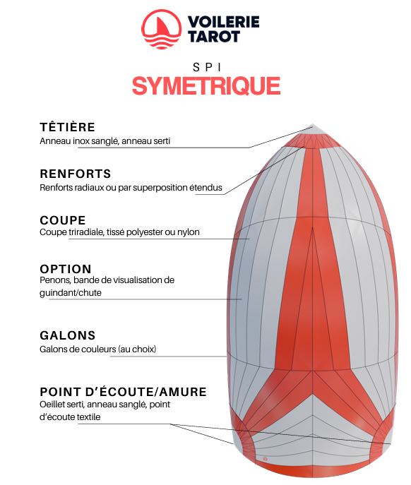 - Le spi symétrique : pour une puissance maximale au vent arrière, avec des manœuvres relativement techniques