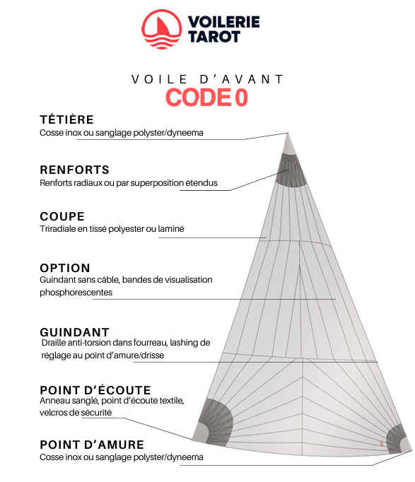 Le code 0 est souvent mal compris : il n’est pas un spi, mais plutôt une voile d’avant légère avec un guindant très tendu. En termes d’utilisation, il se situe entre le génois et le spi.